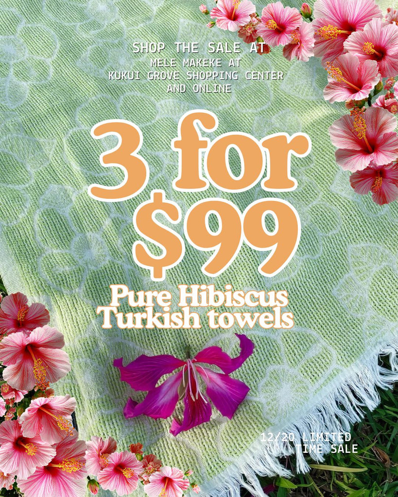 With this item you will receive three mixed Pure Hibiscus Turkish Towels for $99.