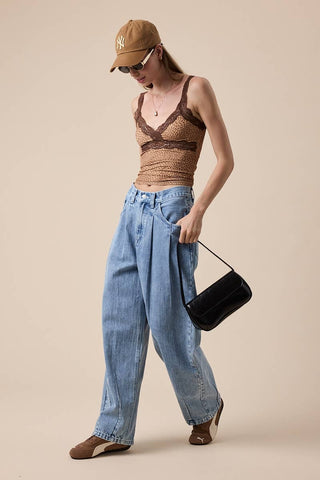 LEOPARD SWEETHEART BROWN LACE STRAP CAMI CROP TOP