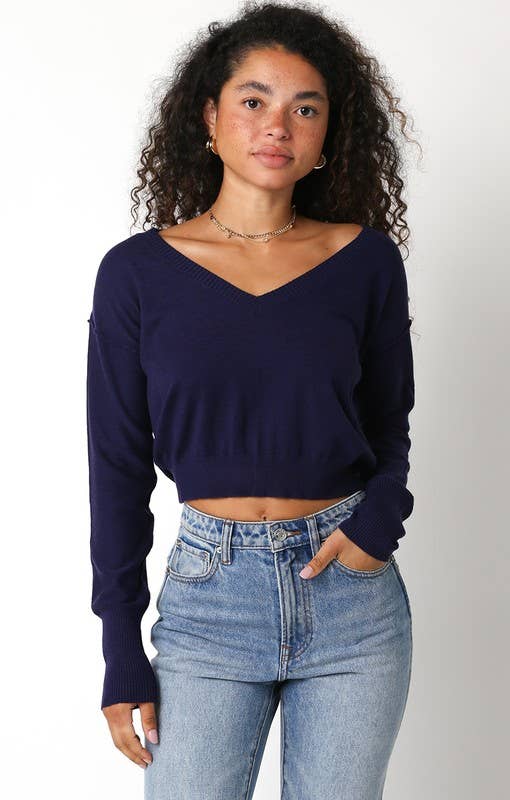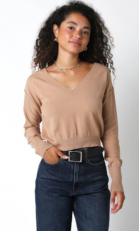 Our Loren Sweater features a V-neck and a light weight. Knit. .