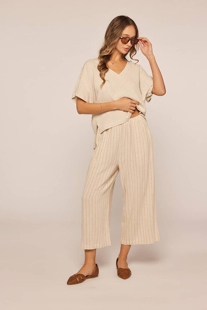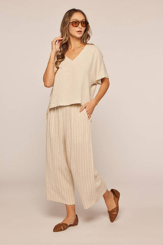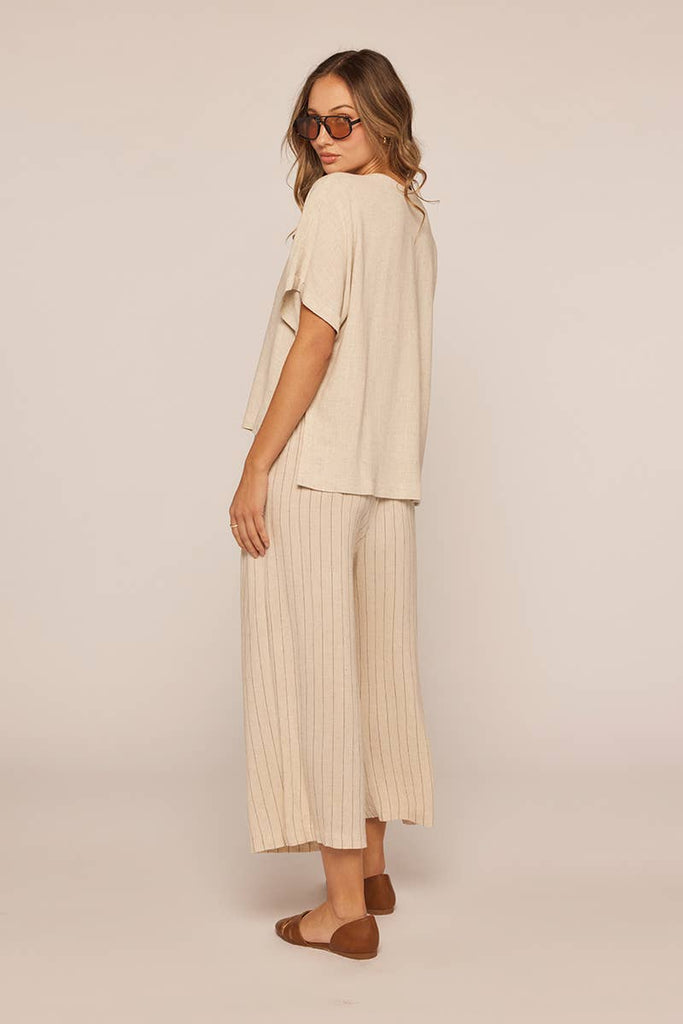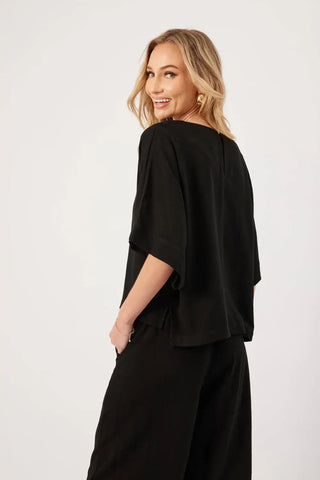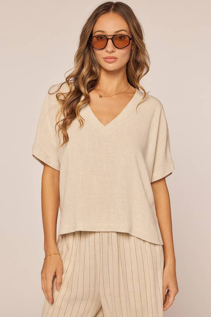 Our Shirley Top, crafted from a lightweight linen-blend fabric, this top features a flattering V-neckline, short cuffed sleeves, and a relaxed fit for all-day comfort.